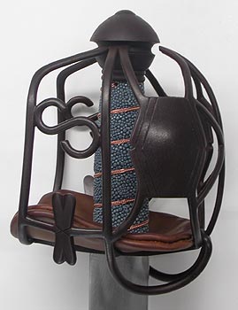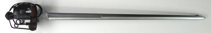 This robust sword shows an early example of the "S" member appearing within the barwork. This has been considered to have a Jacobite connection: the S may stand for Stuart or Sterling. The sturdy hilt is hot forged from steel with the barwork fashioned into a Saltire on the front of the basket. The liner helps to prevent chaffing and also gives protection to the users hand. The diamond section, double fullered blade has a full tang and is made from silicon manganese spring steel that is hardened and tempered to 52-54 Rockwell C.